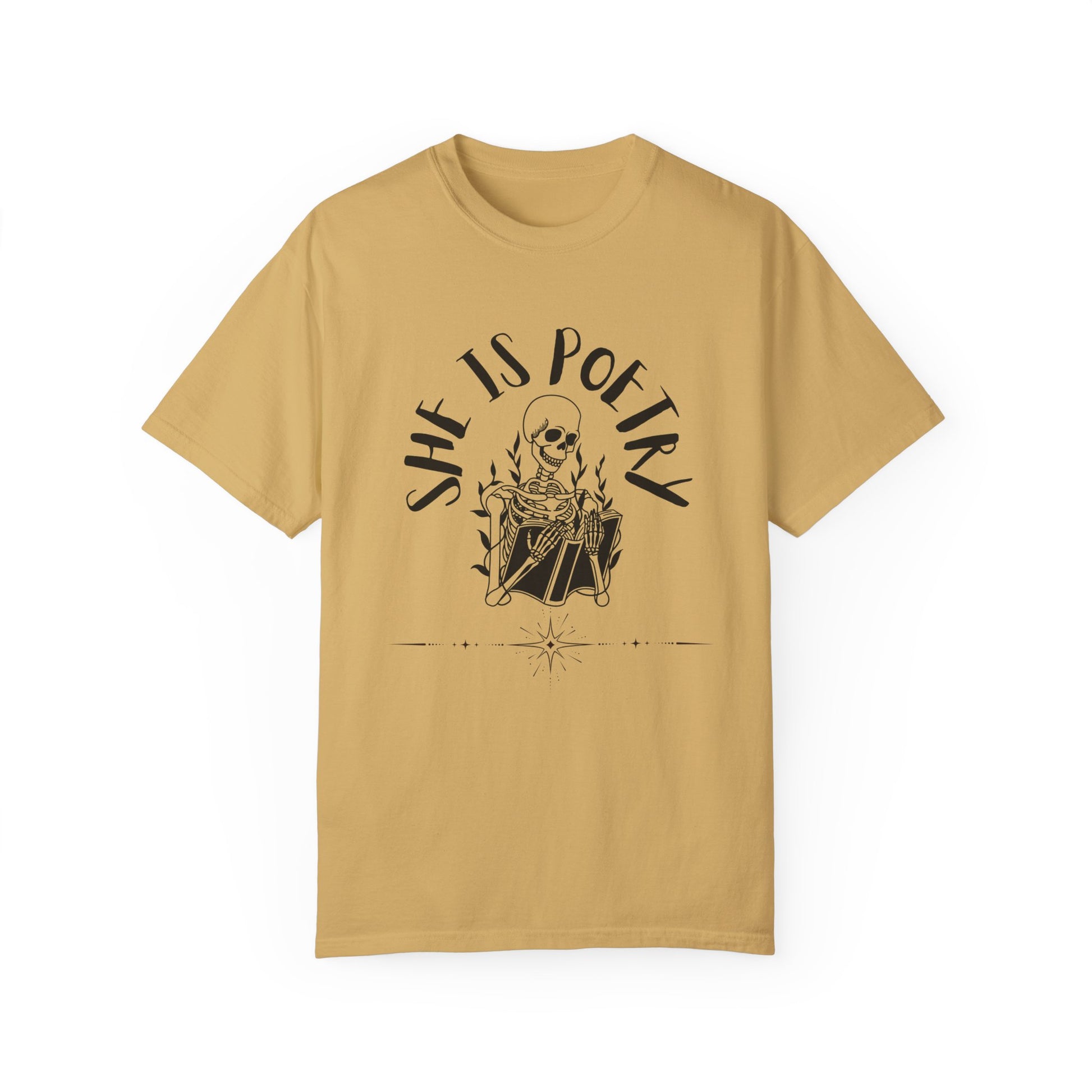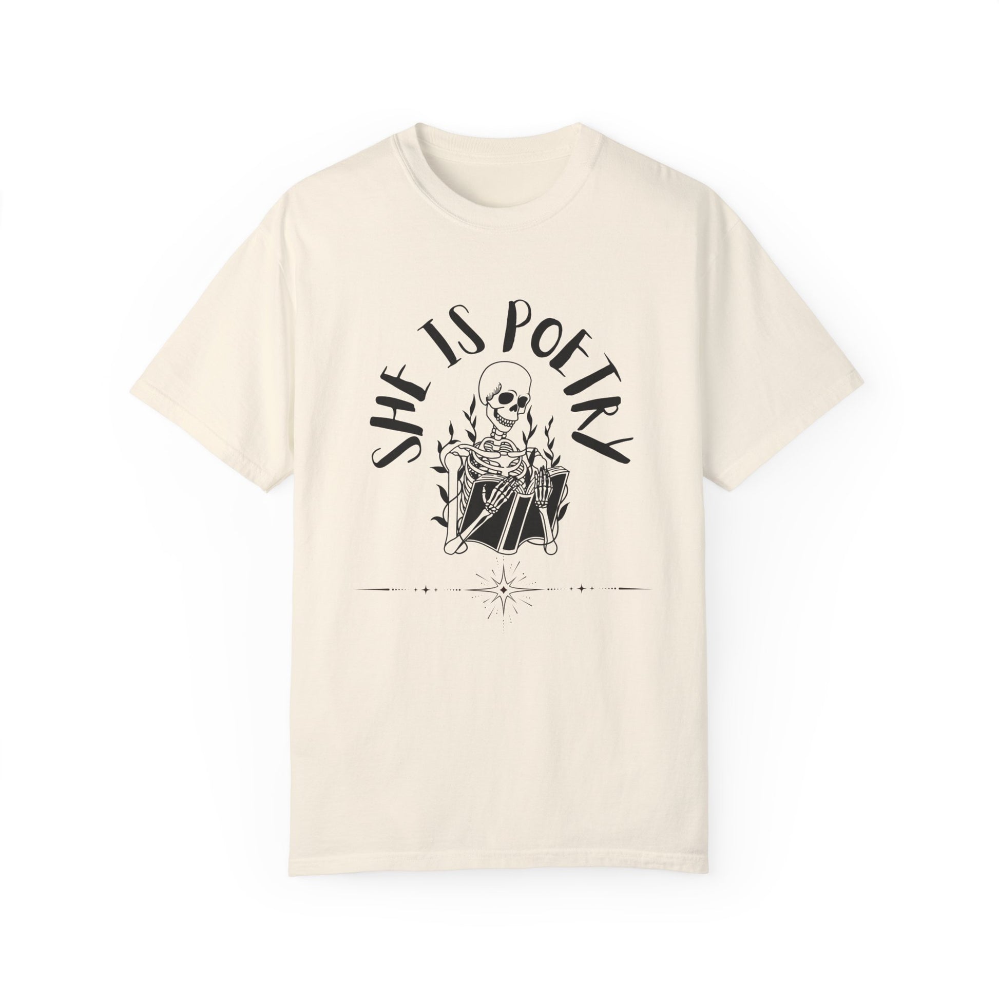 This Skeleton T-shirt exudes a poetic vibe, perfect for those who appreciate artistic and unique designs. It is great for casual wear or for making a statement at a poetry reading or art exhibit.