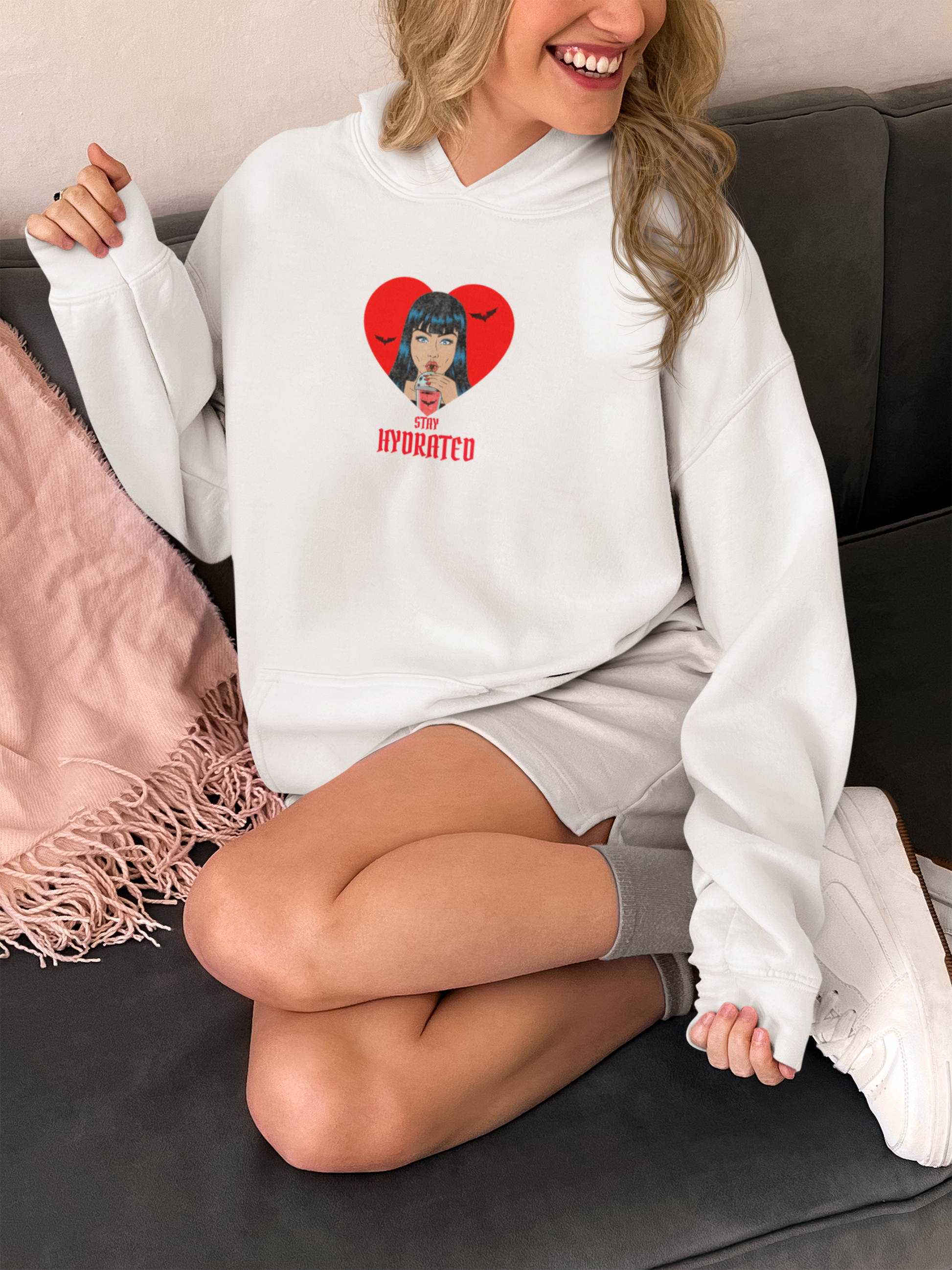 Quench your spooky style with the “Stay Hydrated” Vampire Hoodie. this cozy hoodie is the perfect mix of humor, gothic fashion, and everyday comfort. Whether you’re heading out for a Halloween event, lounging at home, or styling an edgy alternative outfit, this top makes a statement that’s both spooky and cute. Made from soft, high-quality fabric with a relaxed, oversized fit, this hoodie is designed to keep you warm and stylish all fall and winter long. Pair it with jeans, leggings, or boots for an effortlessly cool look. Ideal for adults who love Halloween, gothic fashion, and unique statement pieces.